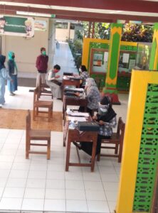 Pengambilan Rapor kelas VII & VIII dilaksanakan pada hari Jum’at, 18 Juni 2021. Demi mematuhi protokol kesehatan guna mencegah penyebaran Covid-19, untuk pengambilan rapor tidak dilakukan di ruang kelas melainkan di hall dan sebelah lapangan basket. Tidak lupa setelah memasuki kawasan sekolah, orang tua/wali murid terlebih dahulu cek suhu dan cuci tangan/menggunakan hand sanitizer yang sudah disediakan.
