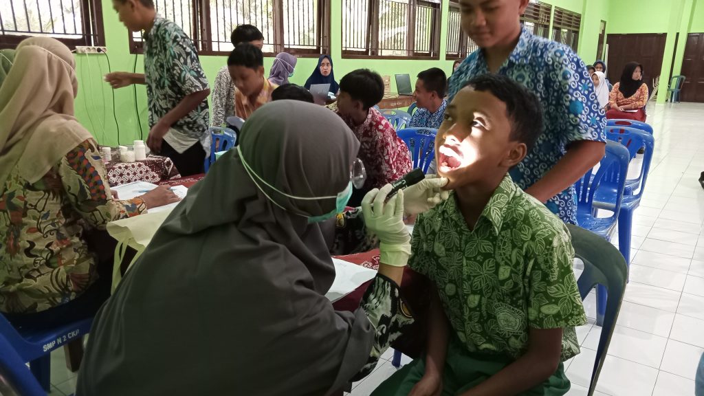 SMP Negeri 2 Cangkringan – Pada hari Rabu, 30 Juli 2025, mulai pukul 08.00, SMP Negeri 2 Cangkringan mengadakan kegiatan skrining kesehatan dan Pemeriksaan Kesehatan Gratis (PKG) untuk semua siswa kelas 7, 8, dan 9 yang dilakukan oleh Puskesmas Cangkringan. Kegiatan ini berlangsung di ruang aula SMP Negeri 2 Cangkringan.